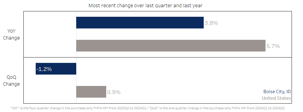 At the end of 2023, Boise was ranked #93 out of 100 metro cities for appreciation over the prior year. At the end of the second quarter of this year, Boise moved up to #76. Our year over year change was 3.8% compared to the national average of 5.7%. Our 2024 second quarter over our first quarter was -1.2%.